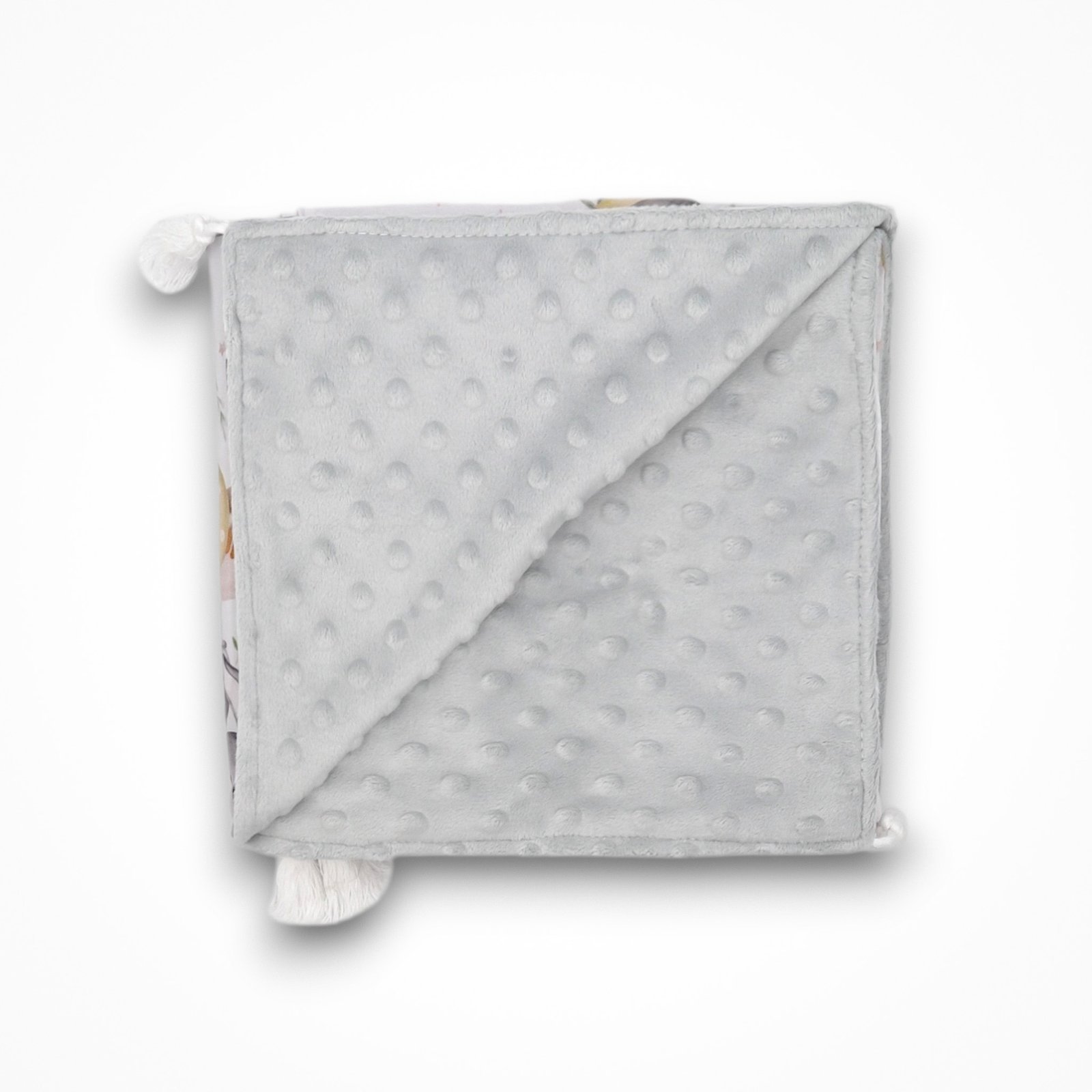 Our popular minky blanket without filling is perfect for any situation. It consists of two layers of material: one made of high-quality, soft, and airy cotton, and the other of cozy minky, which children love. Depending on the weather, you can cover your child with the cotton side (cooler) or the minky side (warmer) โ€“ ideal for year-round use.