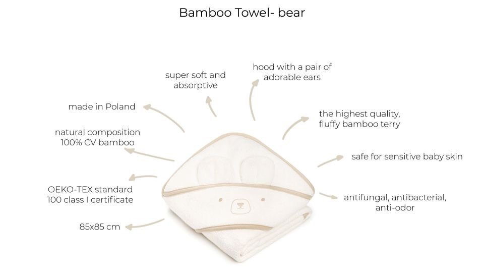 Made from fluffy bamboo terry cloth, this baby towel is especially gentle on the skin and ideal for sensitive baby and children's skin. The practical hood with two cute ears protects the head from getting cold and provides a feeling of security.