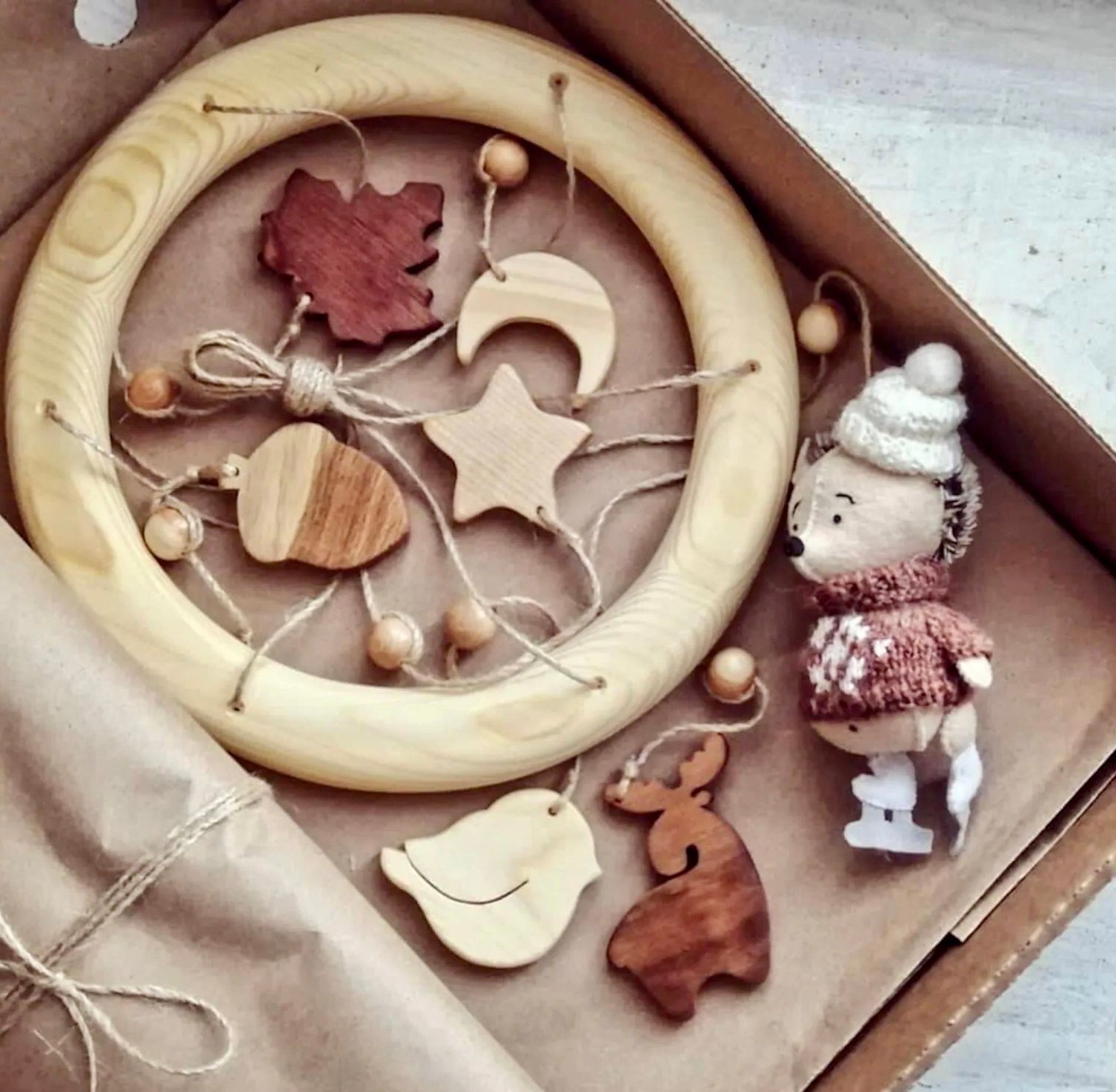 Mobile bébé hérisson en bois
