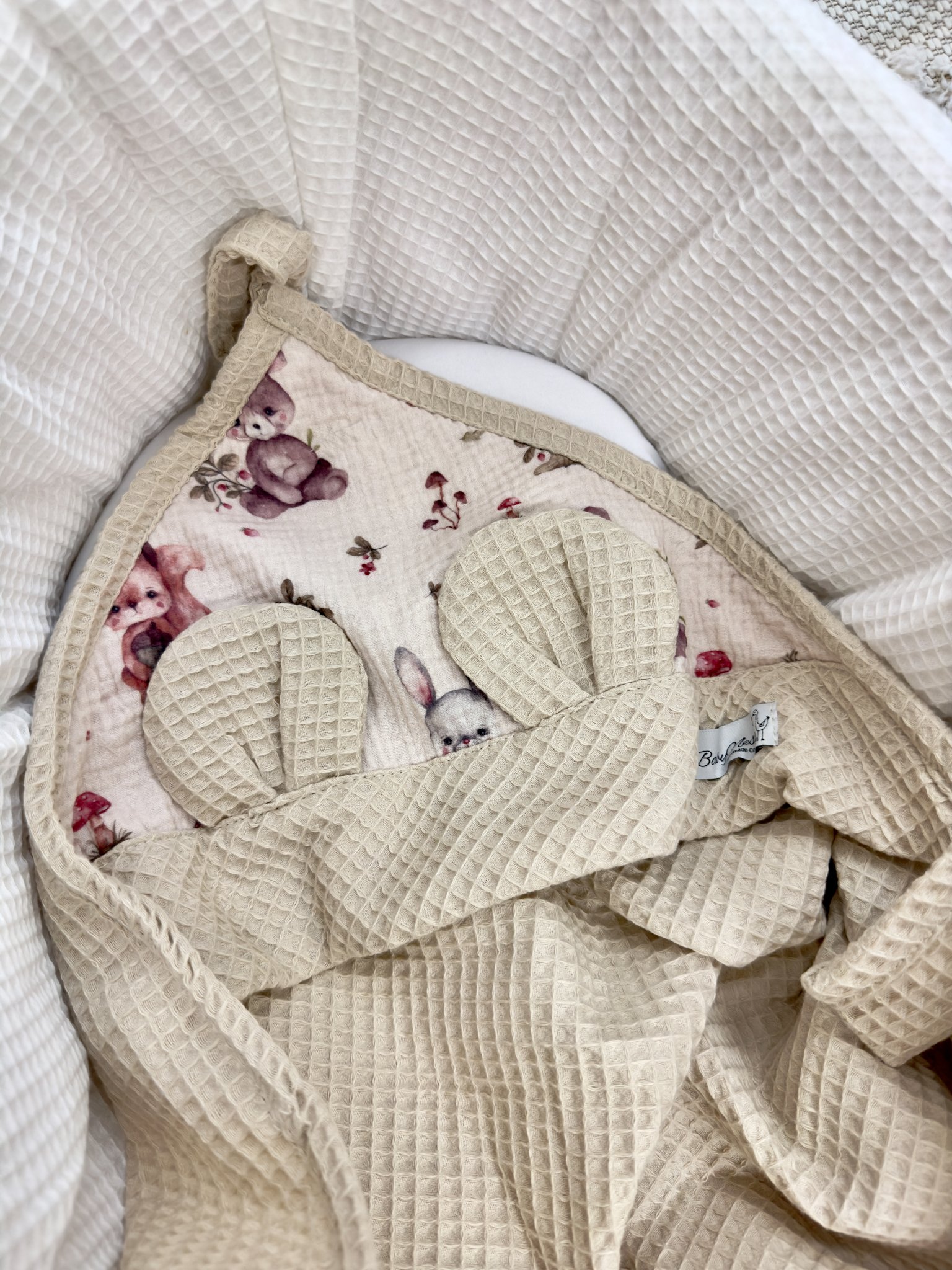 Telo bagno con cappuccio | cialda| Amici del bosco