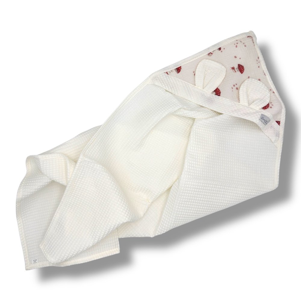 Das einzigartige Badtuch von BabyNest ist sehr weich und saugfähig. Das Waffelmaterial, aus dem es hergestellt ist, ist ein doppelseitiges Material, das saugfähig, atmungsaktiv, luftdurchlässig, wärmend, schnell trocknend und sicher für Kinder ist. Unser Handtuch ist sowohl für Neugeborene als auch für ältere Kinder geeignet.