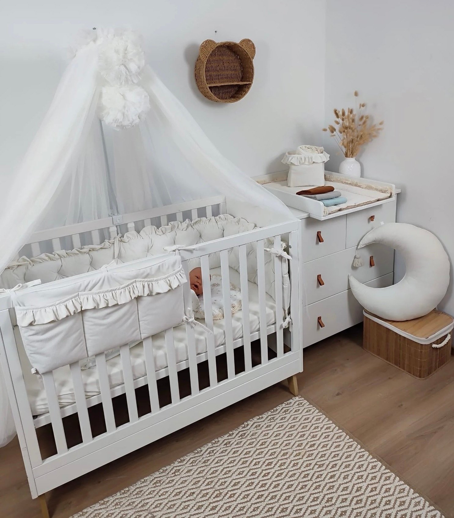 Dieser schöne Organizer im Glam Samt-Stil zum Aufhängen besteht aus 100% Samt. Er hat drei geräumige Fächer für Spielzeug, Decken, Schnuller und andere Dinge, die man immer griffbereit haben möchte.
