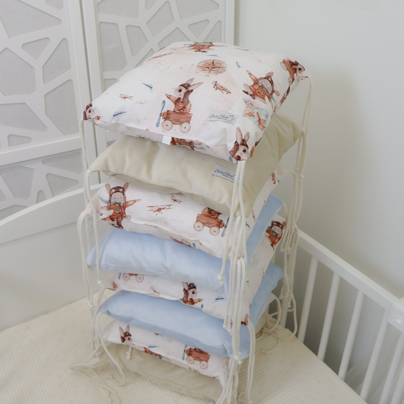 Diese Komplet Set Bettwäsche wird aus zertifizierter Baumwolle und aus Velours hergestellt. Die gesamte BabyNest Kollektion ist handgenäht und besteht aus 100% Baumwollstoffen mit hypoallergener Wattefüllung. Die Kollektion besteht aus einem wunderschönen Muster auf der einen Seite und dem samtigen Velours-Stoff auf der anderen Seite!