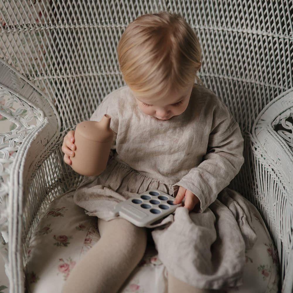 Mit dem Trinkbecher können die Kleinen lernen den Übergang zum offenen Trinkbecher zu machen. Mushie aus Dänemark kreiert hübsche nachhaltige Kinderprodukte.