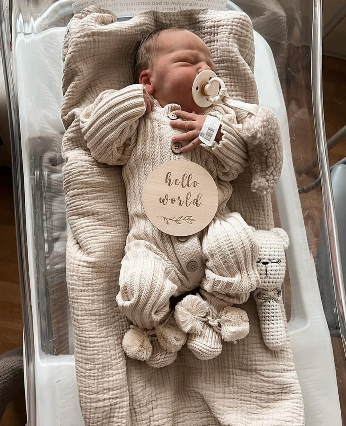 Die Newborn Knitted Booties gibt es jetzt auch im charakteristischen Rippenmuster. Unsere gestrickten Booties aus 100 % Baumwolle sind bequem und kuschelig für die Zehen Ihrer kostbaren Kleinen. Mit süssen, übergroßen Bommeln und funktionellem Kordelzug. Mit dem passenden Strampler und der Mütze ist das Outfit perfekt.