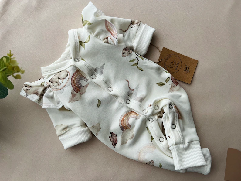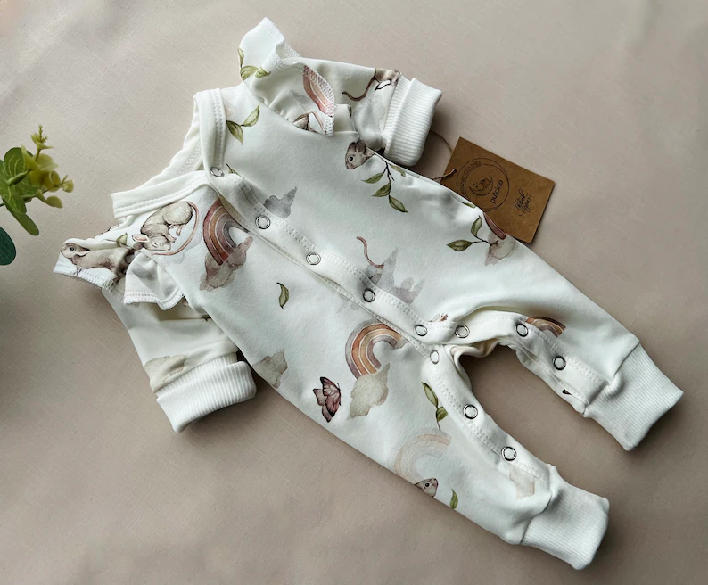 Extrem weich, niedlich und praktisch, da er als tägliche Kleidung oder als Pyjama verwendet werden kann. Ein unverzichtbares Teil in der Babyausstattung.